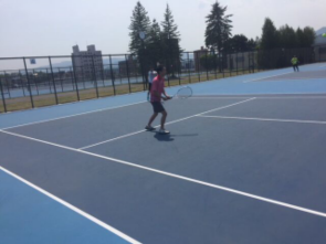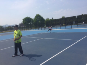 懇親テニスは今春完成したばかりの平岸高台ハードコートにて絶好のテニス日和のなか、熱戦が繰り広げられました。
