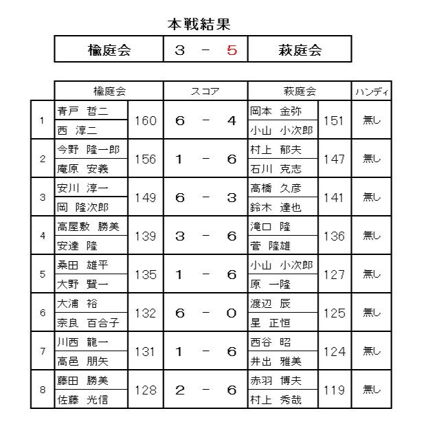 | 萩庭会 | S36井上 S39岡本 S40高橋 *S42滝口 S43小山 S50石川(克) *S50赤羽 S51渡辺 S52西谷 S53鈴木 S56菅 S56井手 S57星 S62井上 *S62原 |