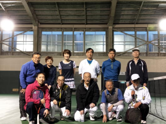 テニスに11名 懇親会に9名集まり、テニスは3時間、懇親会は食べ飲み放題と年齢に似合わずハードな会となりました、ここ数か月、足・腰の調子が悪くテニスをされていなかった干場会長も久々にコートに立ち、現役時代と変わらない?ロブ攻撃で相手を翻弄していました。