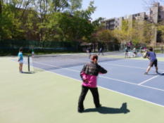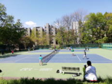 毎年恒例の開催です。現役対OBの対抗戦形式で行われ、現役部員のパワフルなテニスを展開しました。