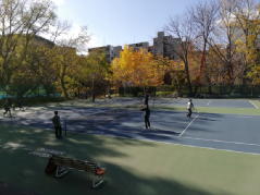 毎年恒例の納会が行われました。好天に恵まれ北大ハードコートで現役学生とのテニスを楽しみました。