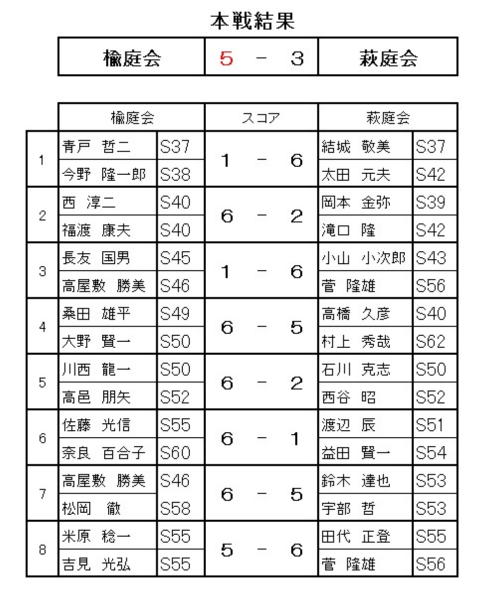 公式戦は久々に楡庭会が5勝3敗で勝利しました。
