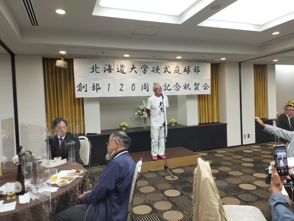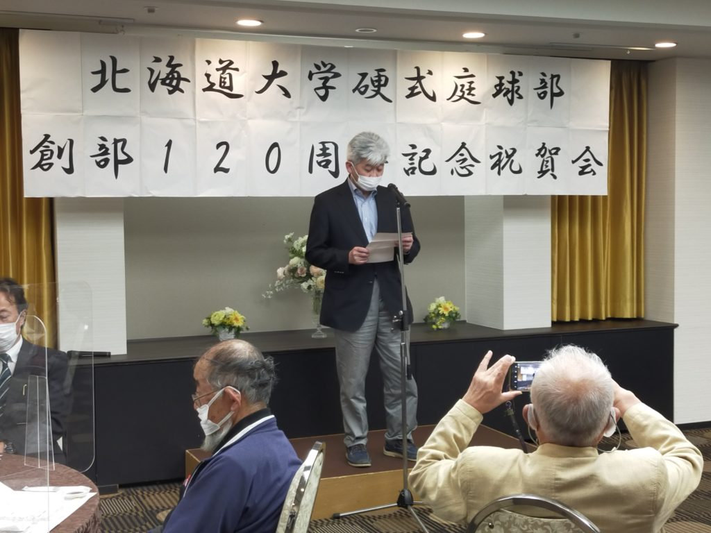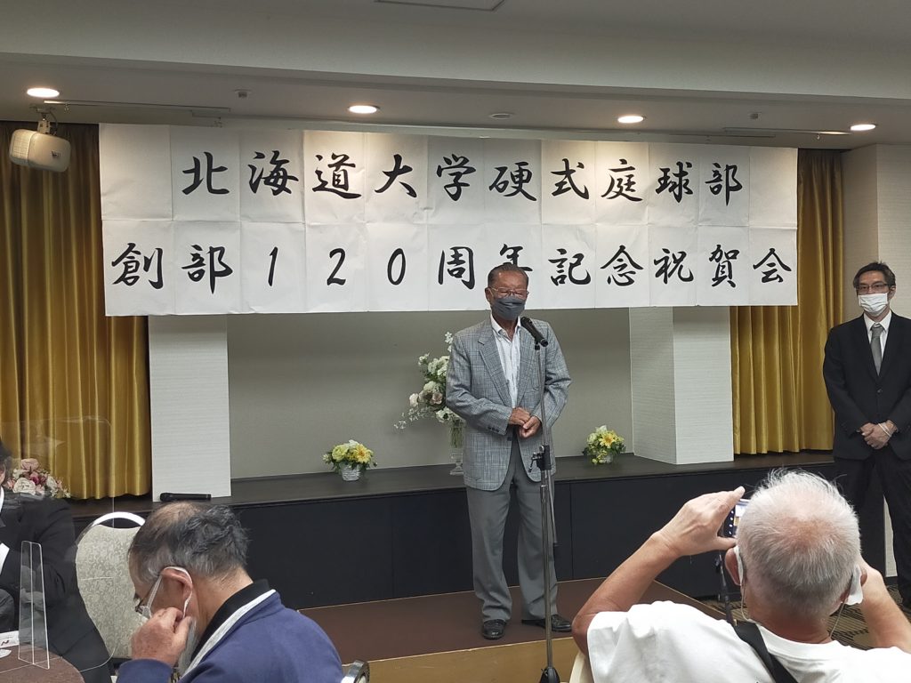 令和4年7月16日に北海道大学硬式庭球部創部120周年記念祝賀会を札幌ネストホテルにて開催した。会を開催するに先立って5月22日に急逝した故前楡庭会会長の干場信司様を追悼する黙祷を出席者全員で行った。干場前会長はこの創部120周年記念祝賀会実施に向けて昨年から先頭に立って準備をしており一緒にお祝いできなかったことは本当に残念であった。