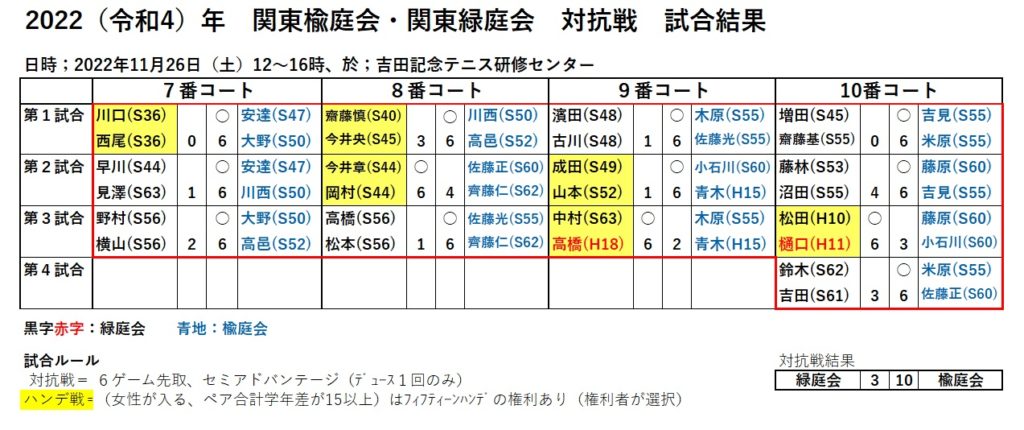 2022.11.26(土) 関東緑庭会との交歓テニスが 柏市・吉田記念コートにて行われました。