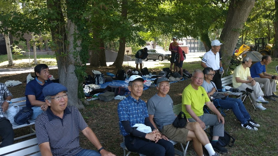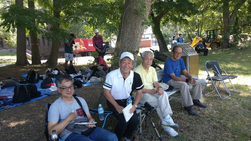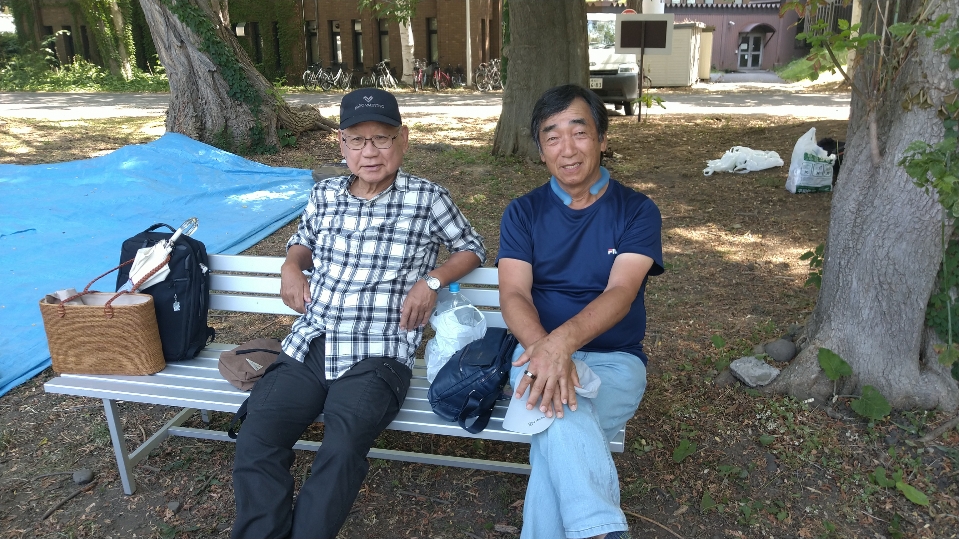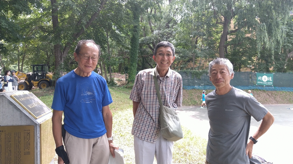 ご家族と北海道旅行の最終日 北大構内を散策中 コートでの応援の声に誘われ観戦中 萩庭会・太田様と偶然の出会いとなり(S40~49年代の七大OB有志が毎年愛知・豊田の室内コートでの懇親テニスで長友・安達共々顔なじみ)5セットマッチと94回の歴史の重さに敬服されていました(安達記)