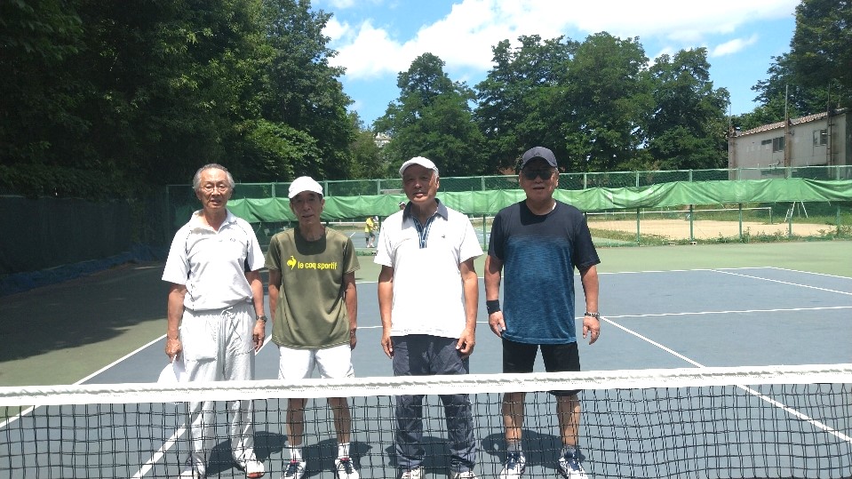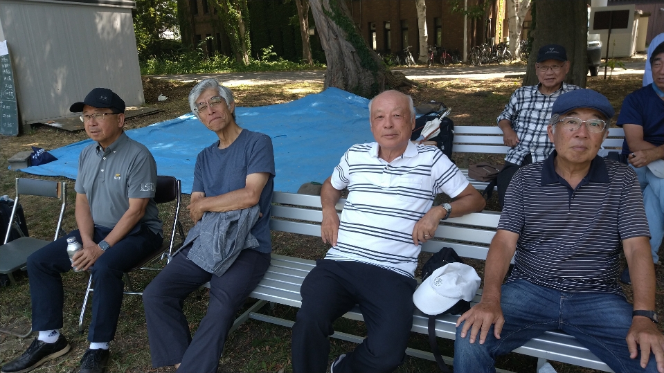 北大コートに東北大OB2名も参加いただき、猛暑の中、ダブルスの試合を実施しました。みなさん思う存分素晴らしい北大のハードコートでのテニスを楽しんでいただいたと思います。このような懇親テニス会を実施することで、楡庭会の集まりも充実していくと感じた次第です。