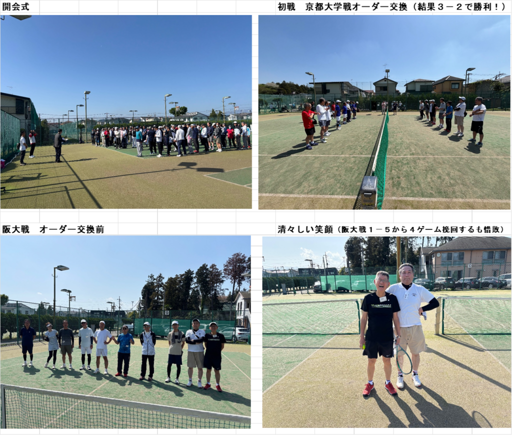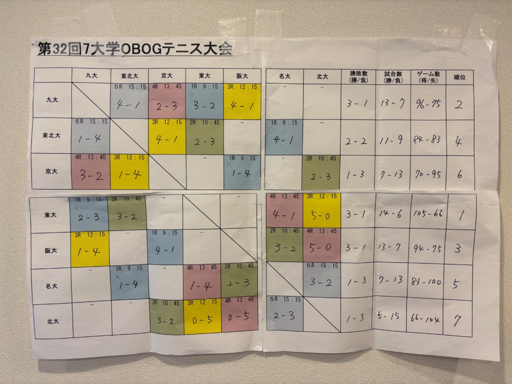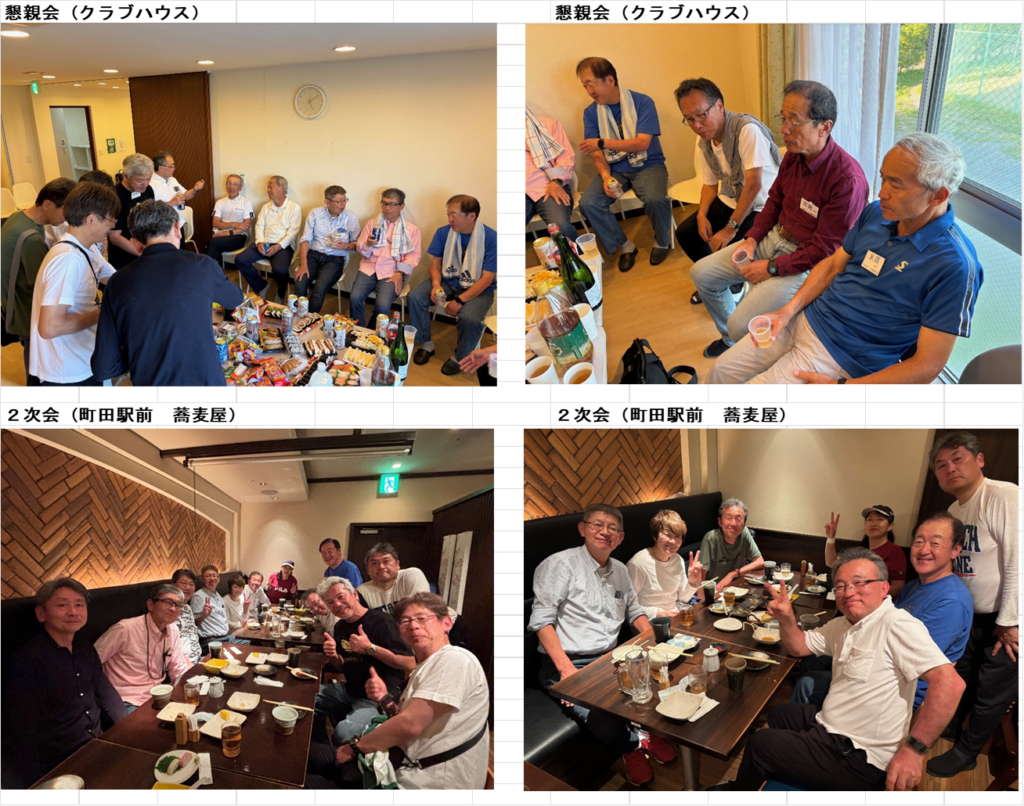 毎年恒例の七大学OBOG戦が開催されました。今年は会場が相模原に変更となりましたが、特にトラブルもなく、初夏の勢いの天候の中、熱戦を繰り広げました。結果は1勝3敗で3大学が並びポイント数で惜しくも3年連続の最下位となりましたが、僅差の試合も多く、また、新たにS56木谷さん、S58藤野さんと強力メンバーも加わり、来年は最下位脱出のみでなく上位に食い込む期待が持てる結果となりました。試合後の懇親会も盛り上がり、例年通り2次会に突入、夜遅くまで楽しい1日となりました。
